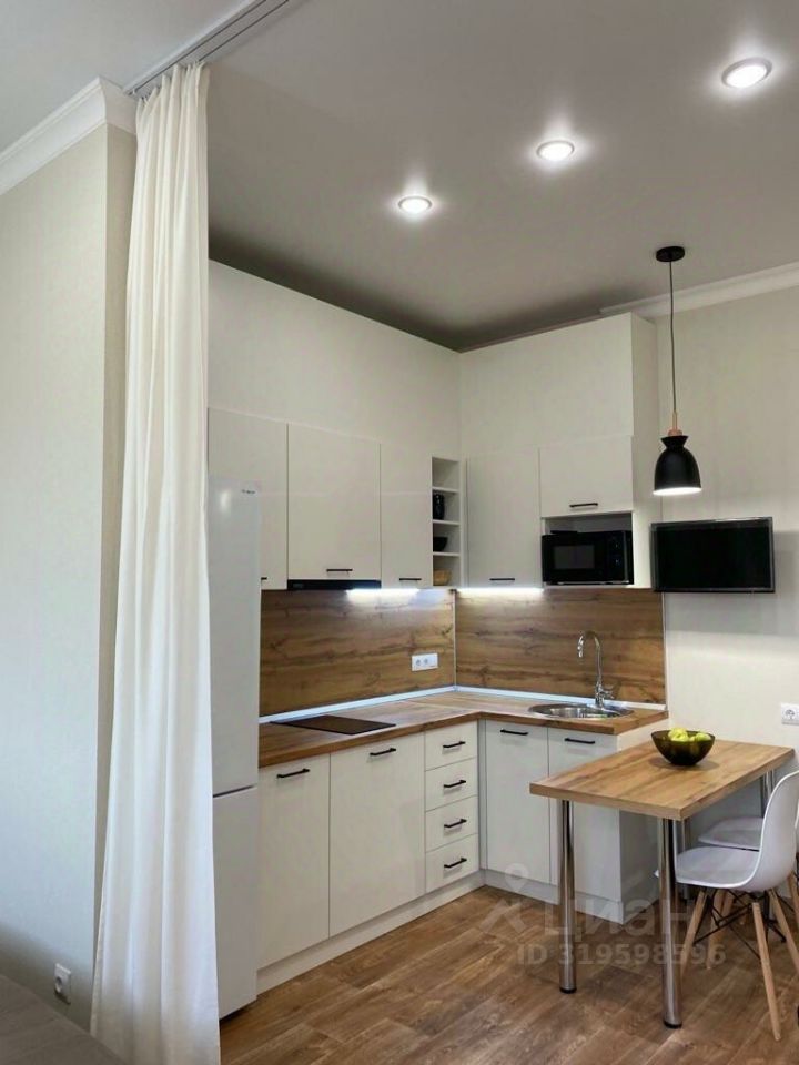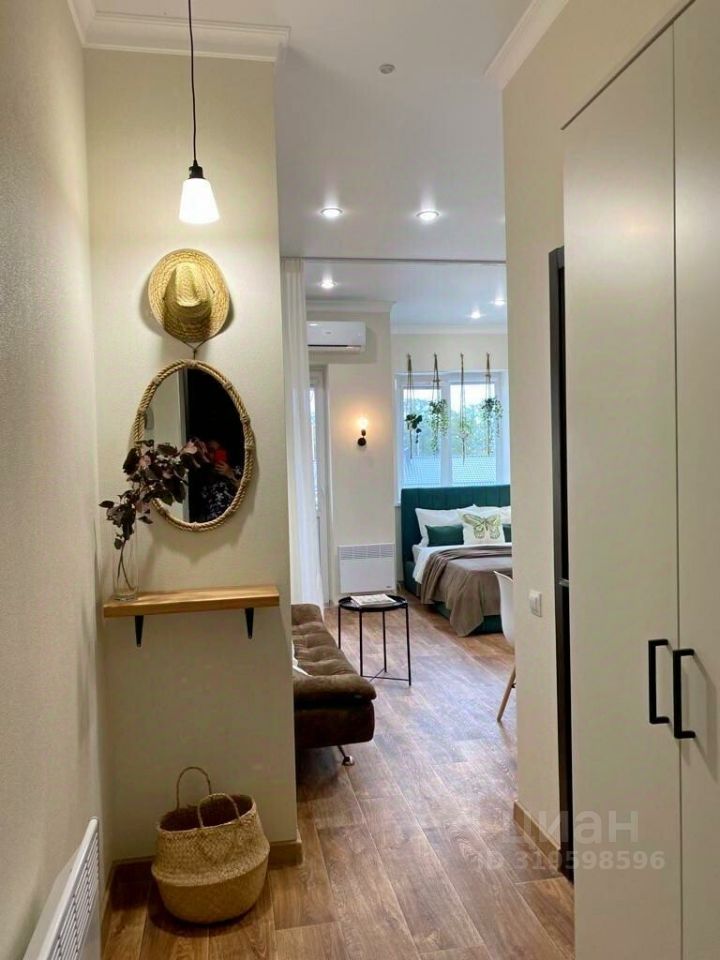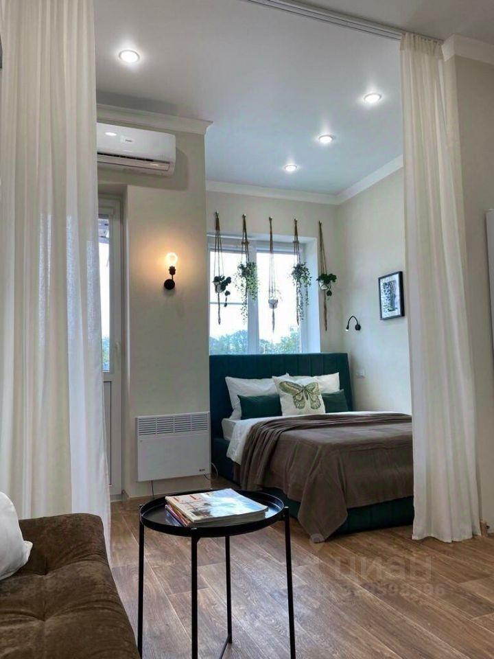 Шикарная квартира-студия площадью 30 м² с дизайнерским ремонтом на третьем этаже трехэтажного дома.
