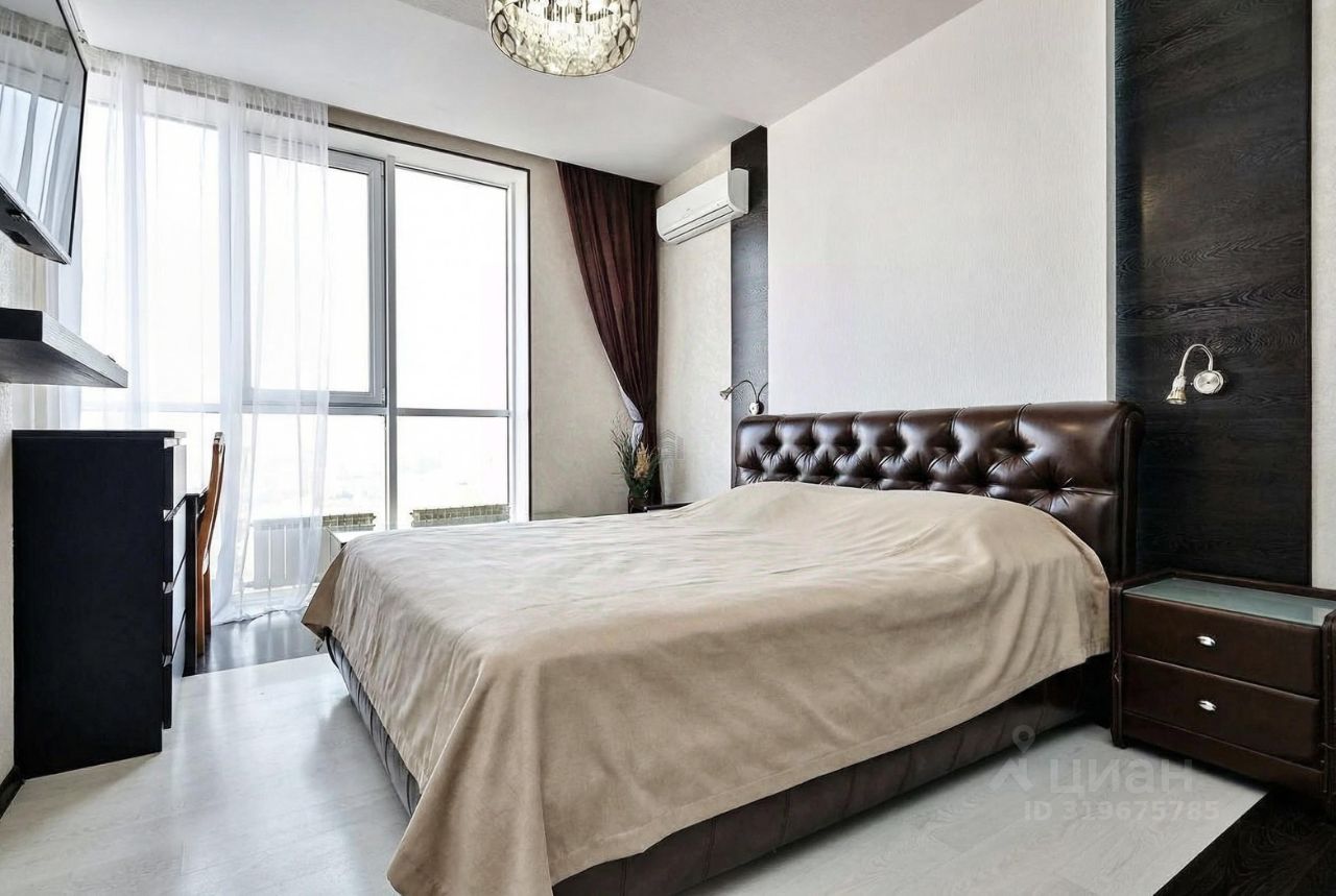 Квартира находится на 21 этаже . Из окон открываются потрясающие виды на историческую часть города и реку Кубань.Планировка: общ. S=90 м, 2 спальни и кухня-гостиная, 2 с/у, просторная витражная лоджия . Высота потолков 3 м.