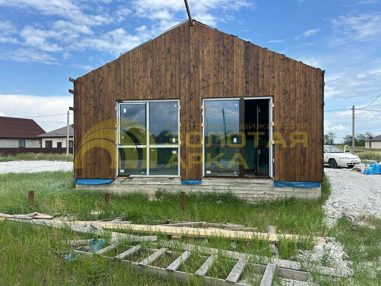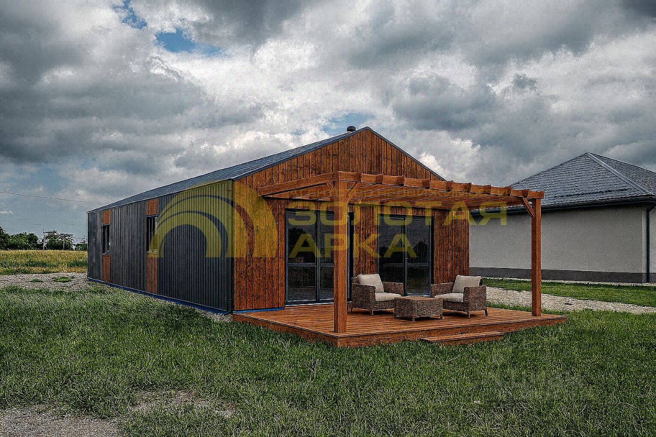 — Площадь дома: 68 м² (2 комнаты, кухня-гостиная, санузел). — Этажность: 1. — Конструкция: каркасный дом с утеплением 150 мм. — Окна: ламинированные металлопластиковые с энергосберегающими пакетами. — Год постройки: 2024.