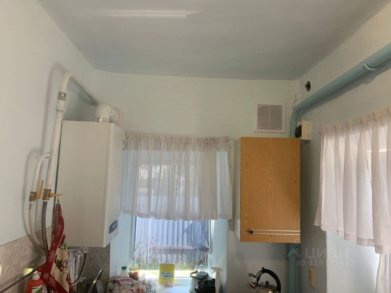 В самом доме индивидуальное газовое отопление, центральная вода, электричество, канализация - септик. Состояние дома - жилое. Нужно сделать небольшой ремонт. Сам по себе дом теплый, построен основательно. В доме две спальни, кухня, небольшой зал.