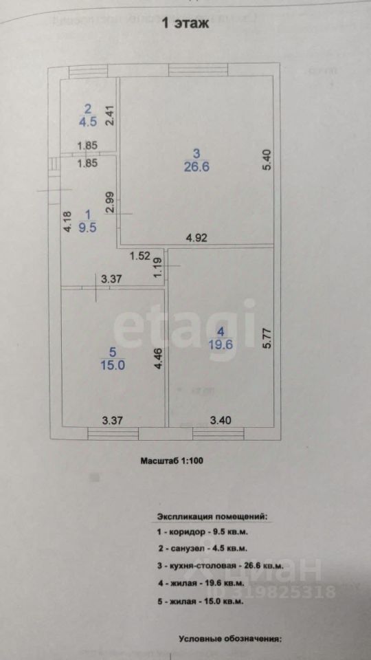 Дом выстроен полностью из кирпича. Площадь дома 76,7 м2. Состоит из кухни-столовой (26.6 м2), совмещённого санузла (4.5 м2), коридора (9.5 м2) и двух комнат (15 м2 и 19.6 м2 ). Предчистовая отделка.