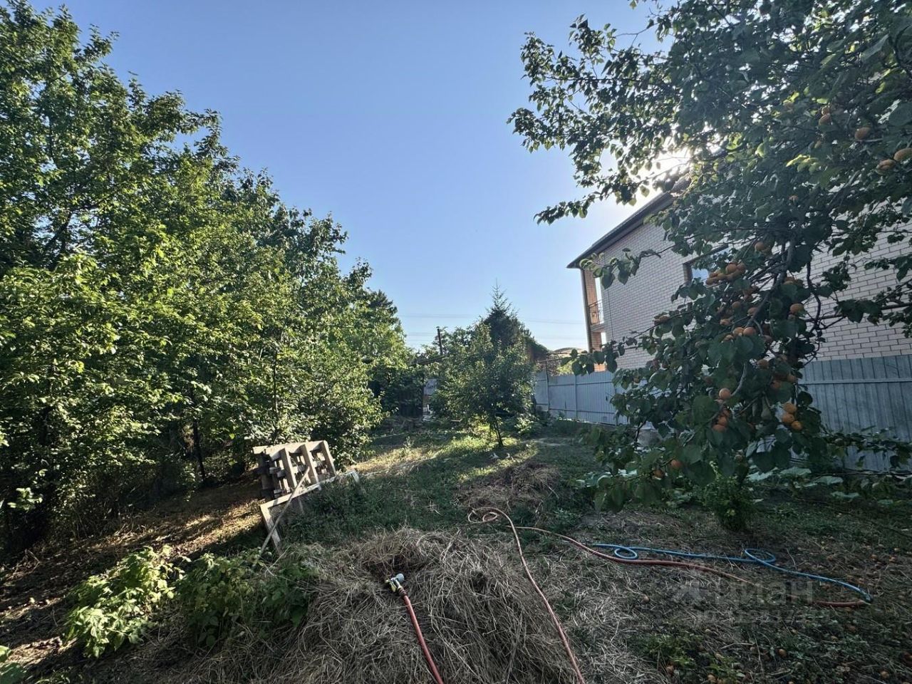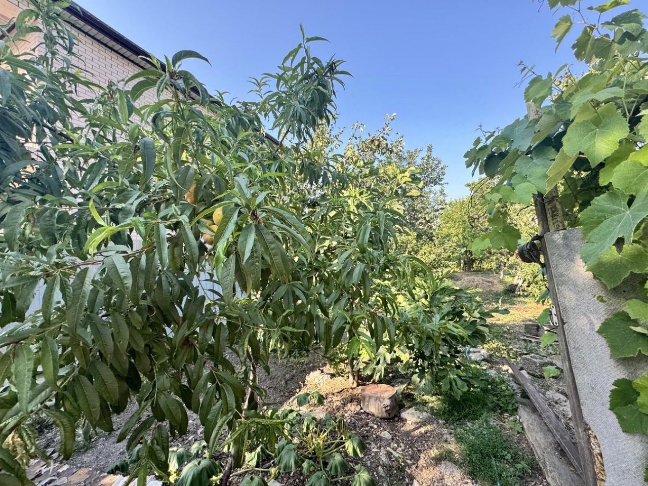 Сад с плодовыми деревьями, виноград, есть бетонная хоз постройка с глубоким сухим подвалом.