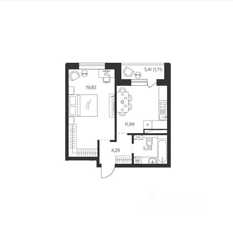 Жилая площадь19,8 м2