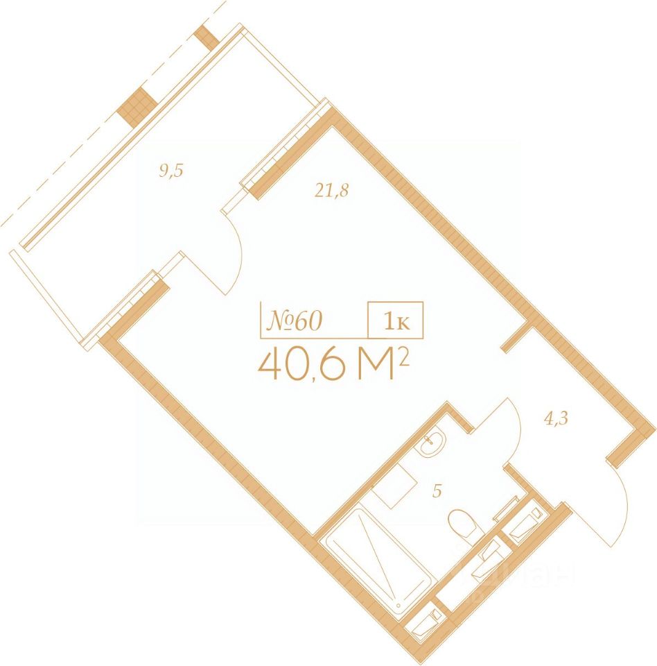 Жилая площадь21,8 м2