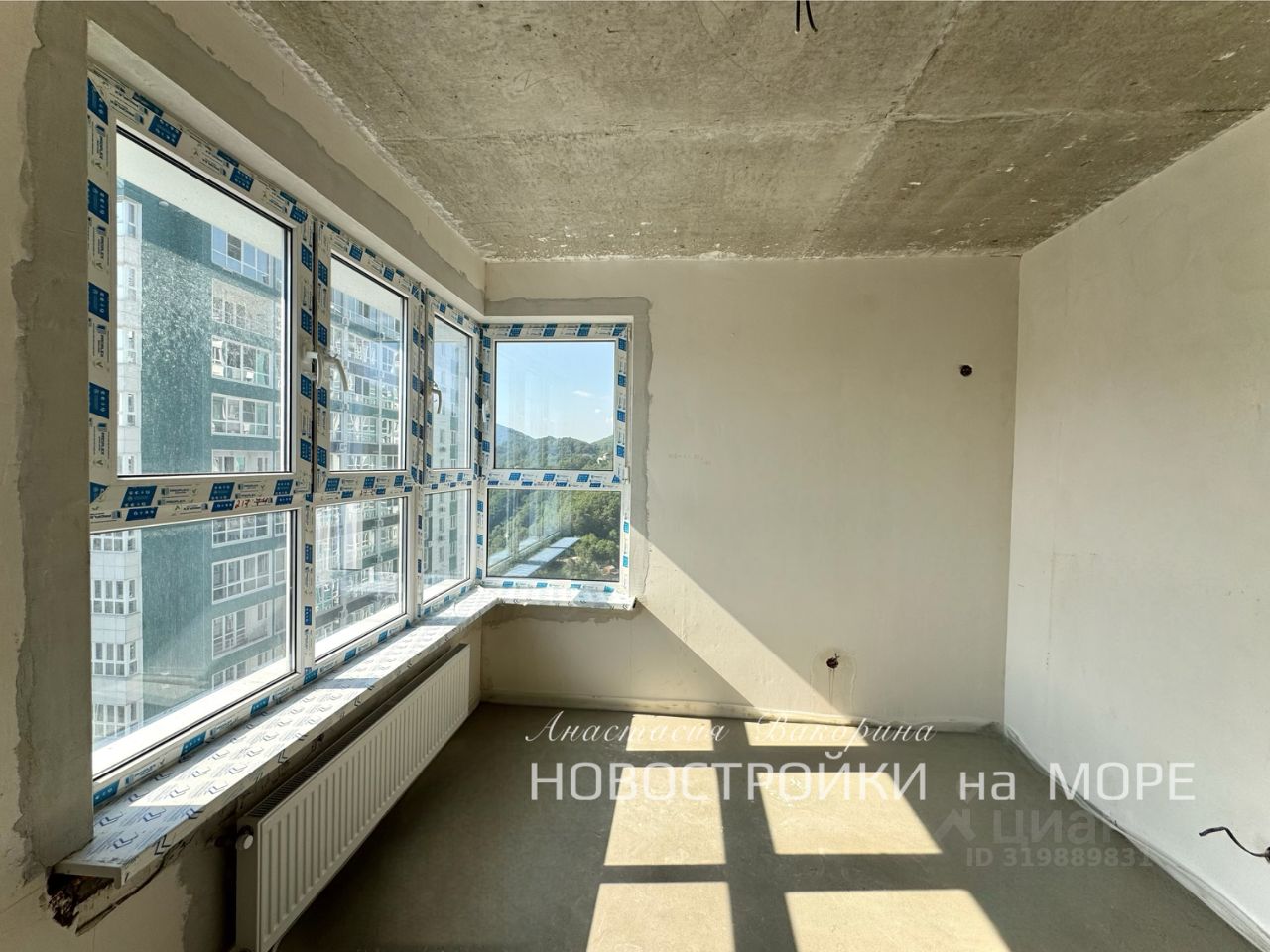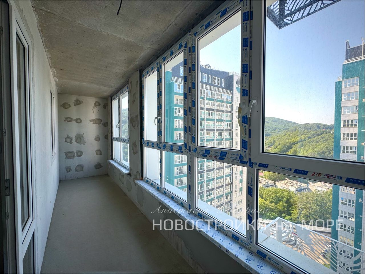 Шикарный вид на горы Большие панорамные тонированные окна Площадь с учетом лоджии 61.82 м2, без учёта лоджии 53.3 м2. Центральные коммуникации. Предчистовая отделка (стяжка, штукатурка, электрика)