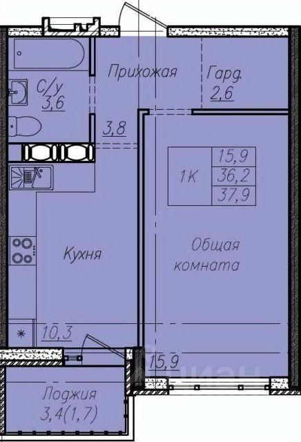 Общая площадь37,9 м2