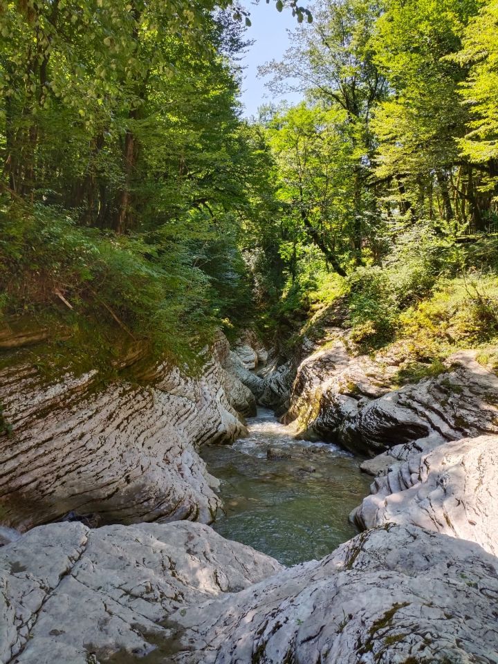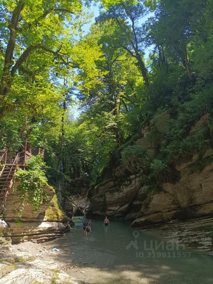 Участок: 5 соток, сухой за счет естественного слива дождевой воды, растут яблони, хурма, виноград. На участке имеется летняя кухня и теплица, а также уличные туалет и душ. Участок рядом с лесом (можно гулять, уклон небольшой), мы ходим пешком купаться в каньон Псахо, там же - голубая глина для оздоровления. Тихое и уютное место как для отдыха от городской суеты, так и для постоянного проживания. Многие соседи живут постоянно.