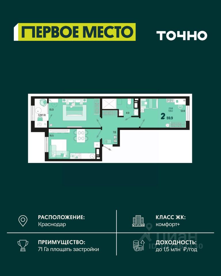Жилой район ''Первое место''- один из самых масштабных проектов в России. На территории 71 га 18 кварталов, 31 дом переменной этажности от 8 до 18 этажей, собственный парк 9 га, храмовый комплекс, пешеходный бульвар ''Круг семьи'', детские и спортивные площадки, мангальные зоны и различные локации для отдыха. В шаговой доступности действующие муниципальные образовательные учреждения: школа на 1 100 мест и детский сад на 250 мест. Помимо этого, в жилом районе ''Первое место'' построятся школа на 1700 мест с крытым 25-метровым бассейном и 5 детских садов на 1 490 мест. На первых этажах многоуровневых парковок ''паркхабов'' разместится более 61 тыс м2 коммерческих помещений. Жителям будут доступны собственный фитнес-центр, кафе, рестораны и магазины. В каждом подъезде предусмотрены дизайнерские холлы в стиле лобби отелей, консьерж-сервис, лапомойки, отдельные колясочные и велосипедные. Также в домах будут просторные кладовые помещения и комнаты для хранения почты с почтоматами для получения посылок из маркетплейсов.