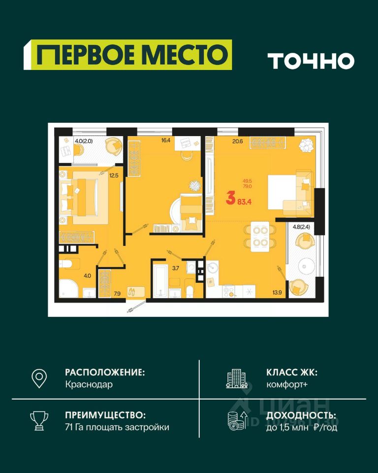 Жилой район ''Первое место''- один из самых масштабных проектов в России. На территории 71 га 18 кварталов, 31 дом переменной этажности от 8 до 18 этажей, собственный парк 9 га, храмовый комплекс, пешеходный бульвар ''Круг семьи'', детские и спортивные площадки, мангальные зоны и различные локации для отдыха. В шаговой доступности действующие муниципальные образовательные учреждения: школа на 1 100 мест и детский сад на 250 мест. Помимо этого, в жилом районе ''Первое место'' построятся школа на 1700 мест с крытым 25-метровым бассейном и 5 детских садов на 1 490 мест. На первых этажах многоуровневых парковок ''паркхабов'' разместится более 61 тыс м2 коммерческих помещений. Жителям будут доступны собственный фитнес-центр, кафе, рестораны и магазины. В каждом подъезде предусмотрены дизайнерские холлы в стиле лобби отелей, консьерж-сервис, лапомойки, отдельные колясочные и велосипедные. Также в домах будут просторные кладовые помещения и комнаты для хранения почты с почтоматами для получения посылок из маркетплейсов.