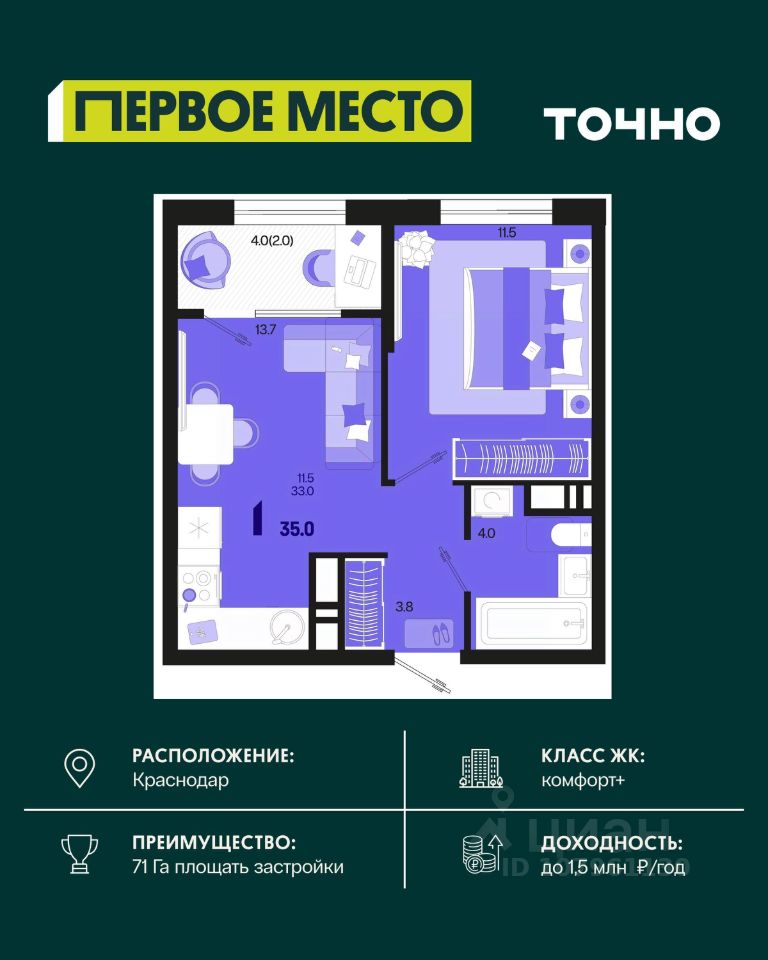 Жилой район ''Первое место''- один из самых масштабных проектов в России. На территории 71 га 18 кварталов, 31 дом переменной этажности от 8 до 18 этажей, собственный парк 9 га, храмовый комплекс, пешеходный бульвар ''Круг семьи'', детские и спортивные площадки, мангальные зоны и различные локации для отдыха. В шаговой доступности действующие муниципальные образовательные учреждения: школа на 1 100 мест и детский сад на 250 мест. Помимо этого, в жилом районе ''Первое место'' построятся школа на 1700 мест с крытым 25-метровым бассейном и 5 детских садов на 1 490 мест. На первых этажах многоуровневых парковок ''паркхабов'' разместится более 61 тыс м2 коммерческих помещений. Жителям будут доступны собственный фитнес-центр, кафе, рестораны и магазины. В каждом подъезде предусмотрены дизайнерские холлы в стиле лобби отелей, консьерж-сервис, лапомойки, отдельные колясочные и велосипедные. Также в домах будут просторные кладовые помещения и комнаты для хранения почты с почтоматами для получения посылок из маркетплейсов.