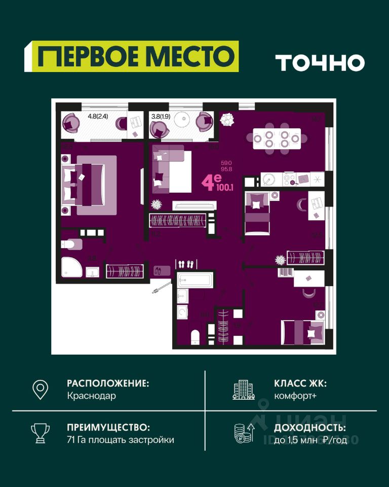 продам 4-к, Виктора Казанцева, 1.314 514 500 ₽