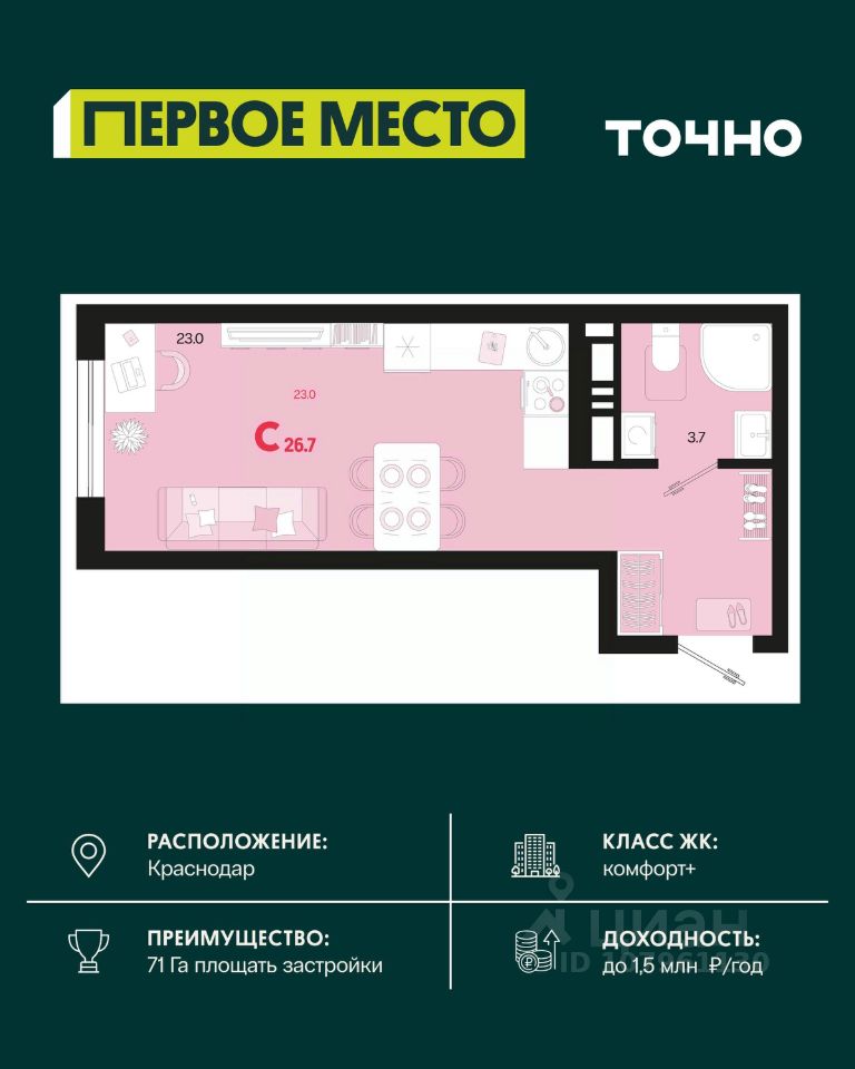 продам 1-к, Виктора Казанцева, 1.34 672 500 ₽