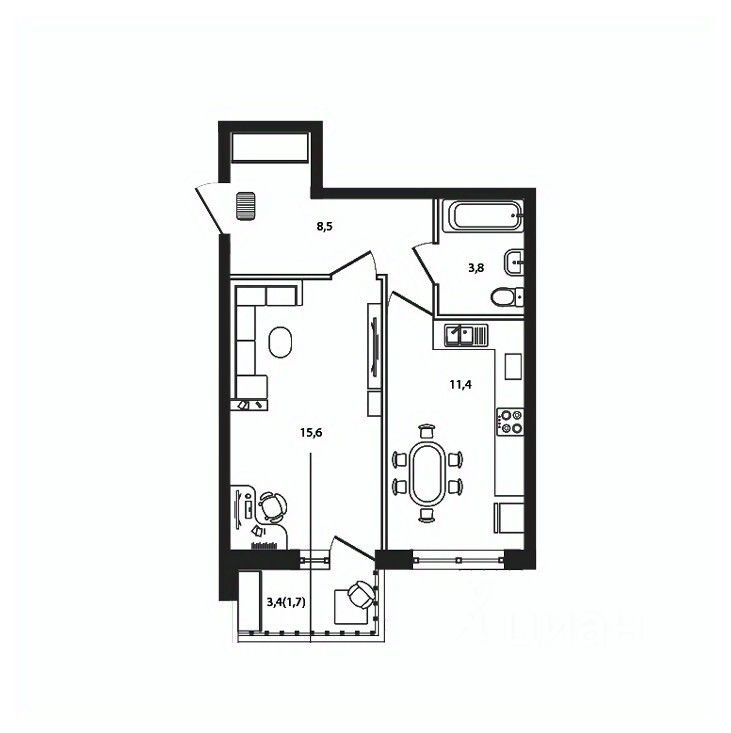 Жилая площадь15,6 м2
