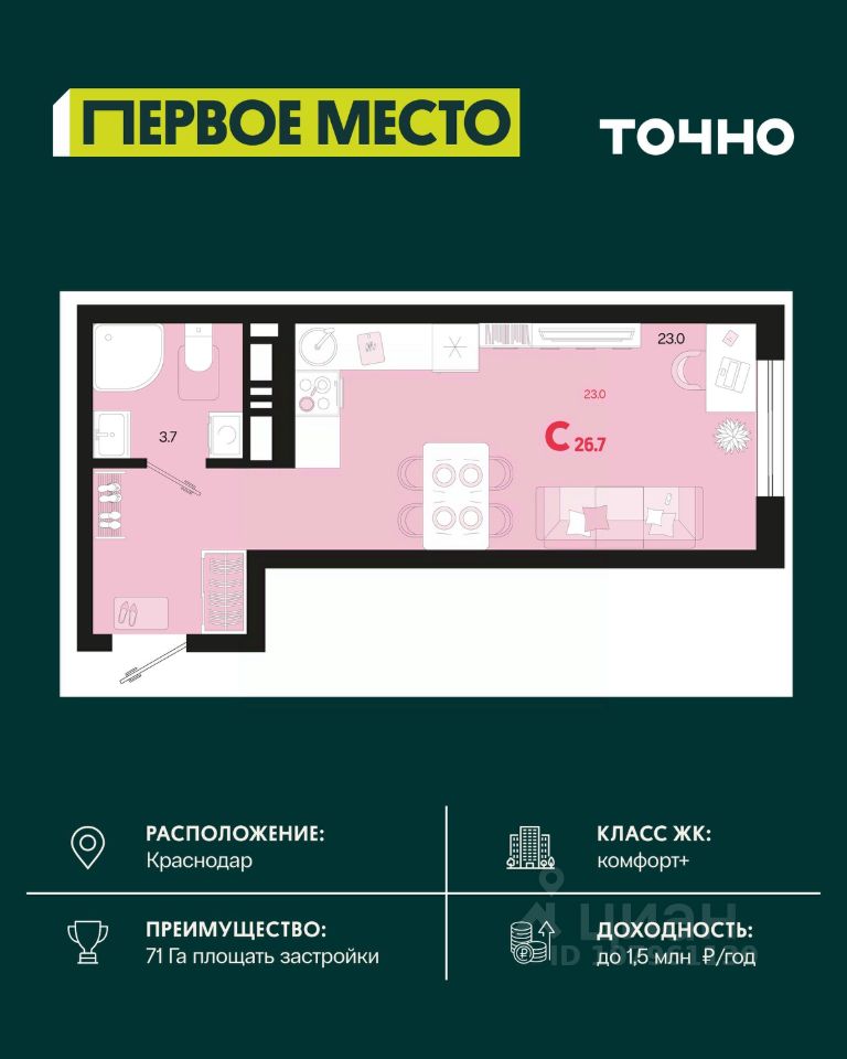 продам 1-к, Виктора Казанцева, 1.34 672 500 ₽