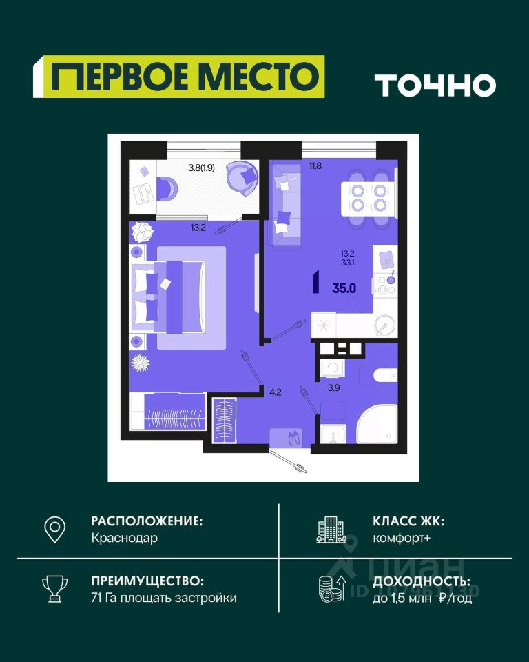Жилой район ''Первое место''- один из самых масштабных проектов в России. На территории 71 га 18 кварталов, 31 дом переменной этажности от 8 до 18 этажей, собственный парк 9 га, храмовый комплекс, пешеходный бульвар ''Круг семьи'', детские и спортивные площадки, мангальные зоны и различные локации для отдыха. В шаговой доступности действующие муниципальные образовательные учреждения: школа на 1 100 мест и детский сад на 250 мест. Помимо этого, в жилом районе ''Первое место'' построятся школа на 1700 мест с крытым 25-метровым бассейном и 5 детских садов на 1 490 мест. На первых этажах многоуровневых парковок ''паркхабов'' разместится более 61 тыс м2 коммерческих помещений. Жителям будут доступны собственный фитнес-центр, кафе, рестораны и магазины. В каждом подъезде предусмотрены дизайнерские холлы в стиле лобби отелей, консьерж-сервис, лапомойки, отдельные колясочные и велосипедные. Также в домах будут просторные кладовые помещения и комнаты для хранения почты с почтоматами для получения посылок из маркетплейсов.