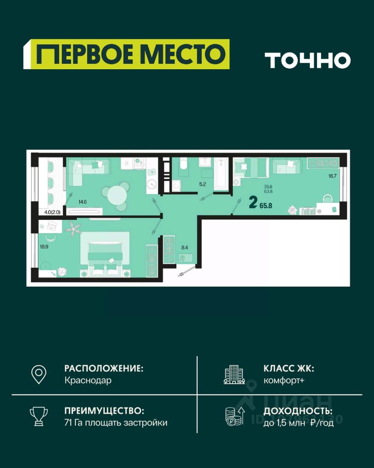 Общая площадь65,8 м2