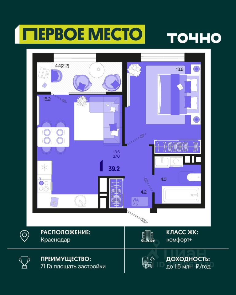 Жилой район ''Первое место''- один из самых масштабных проектов в России. На территории 71 га 18 кварталов, 31 дом переменной этажности от 8 до 18 этажей, собственный парк 9 га, храмовый комплекс, пешеходный бульвар ''Круг семьи'', детские и спортивные площадки, мангальные зоны и различные локации для отдыха. В шаговой доступности действующие муниципальные образовательные учреждения: школа на 1 100 мест и детский сад на 250 мест. Помимо этого, в жилом районе ''Первое место'' построятся школа на 1700 мест с крытым 25-метровым бассейном и 5 детских садов на 1 490 мест. На первых этажах многоуровневых парковок ''паркхабов'' разместится более 61 тыс м2 коммерческих помещений. Жителям будут доступны собственный фитнес-центр, кафе, рестораны и магазины. В каждом подъезде предусмотрены дизайнерские холлы в стиле лобби отелей, консьерж-сервис, лапомойки, отдельные колясочные и велосипедные. Также в домах будут просторные кладовые помещения и комнаты для хранения почты с почтоматами для получения посылок из маркетплейсов.