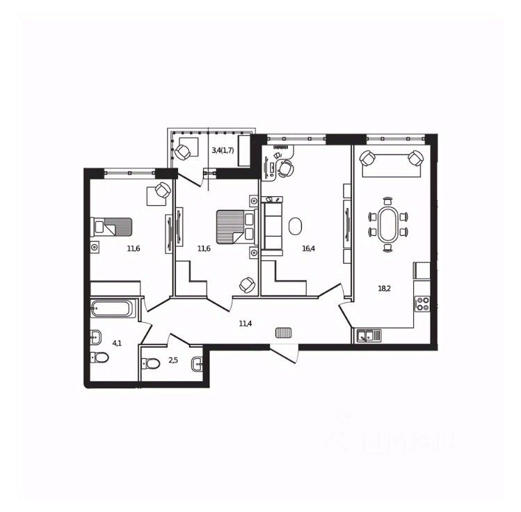 Кухня18,2 м2