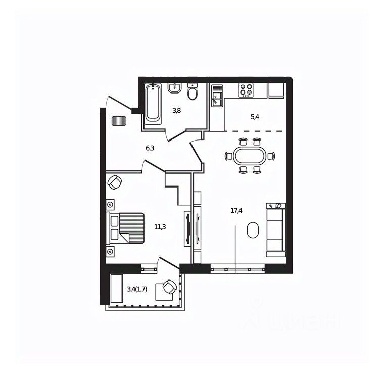 Жилая площадь11,3 м2