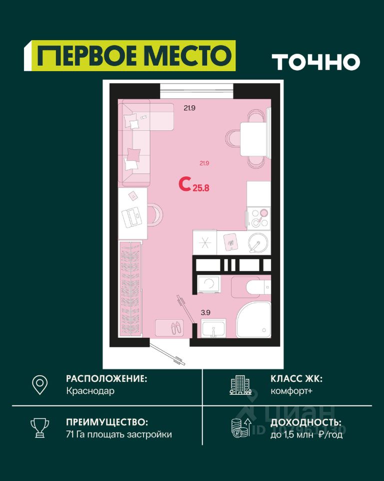 Общая площадь25,8 м2