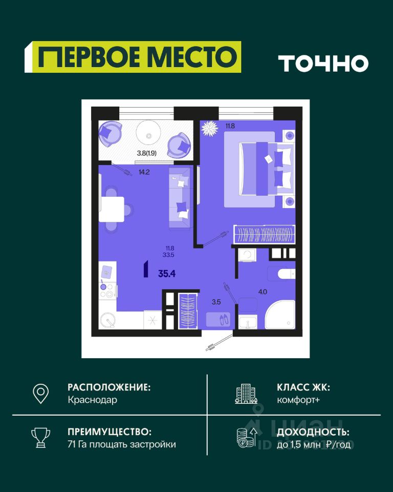 продам 1-к, Виктора Казанцева, 1.55 947 200 ₽