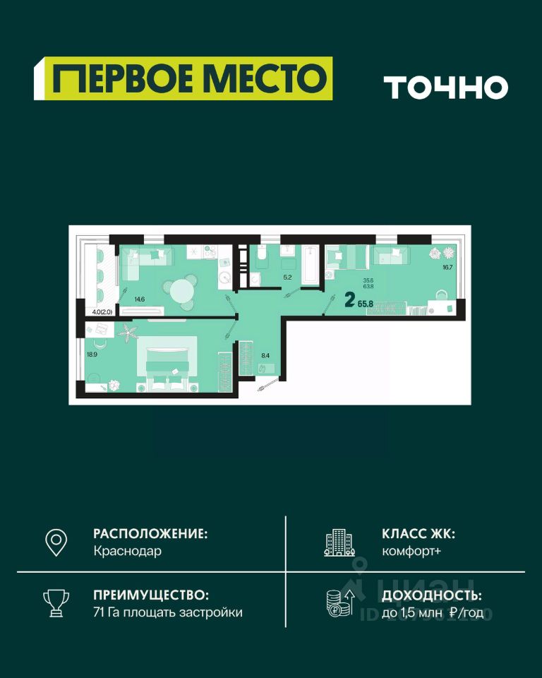 Жилой район ''Первое место''- один из самых масштабных проектов в России. На территории 71 га 18 кварталов, 31 дом переменной этажности от 8 до 18 этажей, собственный парк 9 га, храмовый комплекс, пешеходный бульвар ''Круг семьи'', детские и спортивные площадки, мангальные зоны и различные локации для отдыха. В шаговой доступности действующие муниципальные образовательные учреждения: школа на 1 100 мест и детский сад на 250 мест. Помимо этого, в жилом районе ''Первое место'' построятся школа на 1700 мест с крытым 25-метровым бассейном и 5 детских садов на 1 490 мест. На первых этажах многоуровневых парковок ''паркхабов'' разместится более 61 тыс м2 коммерческих помещений. Жителям будут доступны собственный фитнес-центр, кафе, рестораны и магазины. В каждом подъезде предусмотрены дизайнерские холлы в стиле лобби отелей, консьерж-сервис, лапомойки, отдельные колясочные и велосипедные. Также в домах будут просторные кладовые помещения и комнаты для хранения почты с почтоматами для получения посылок из маркетплейсов.