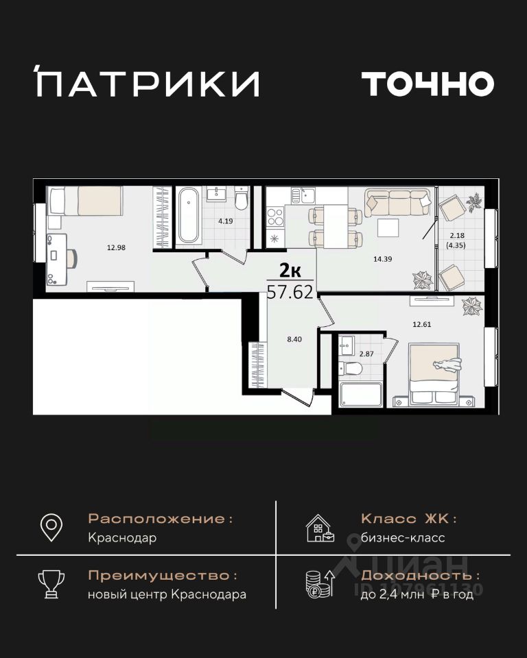 продам 2-к квартира16 813 516 ₽