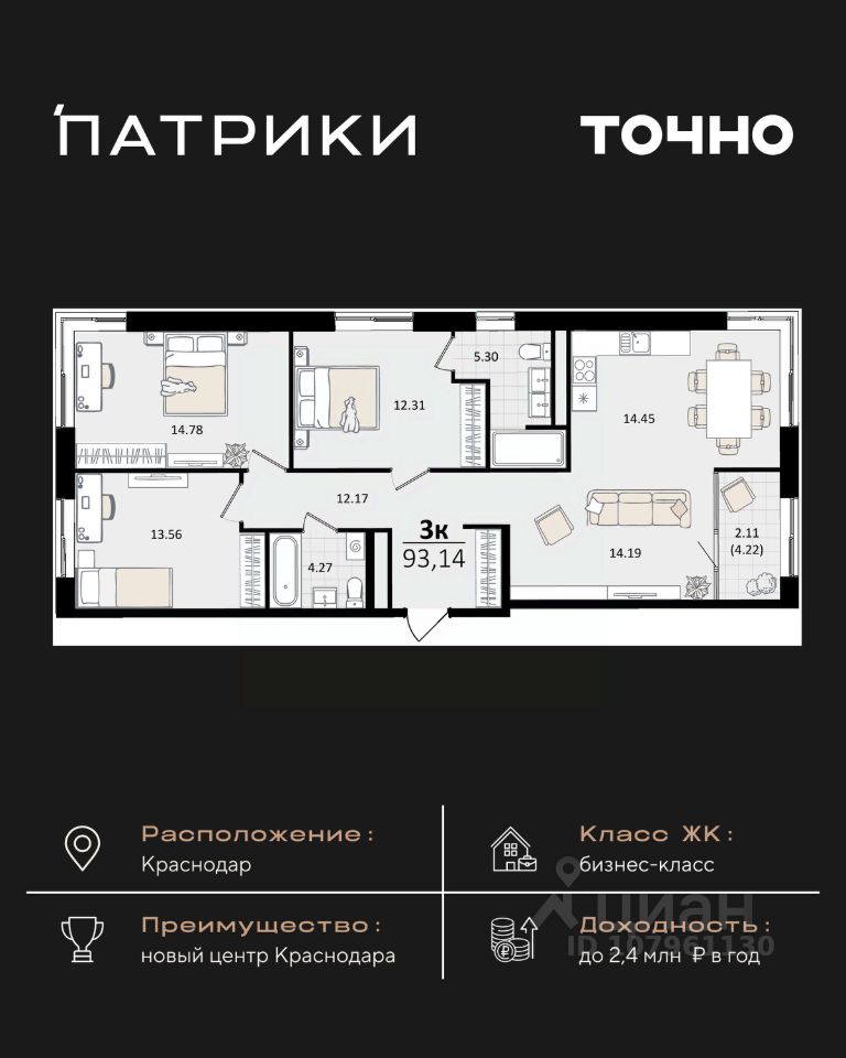 продам 3-к квартира29 497 438 ₽