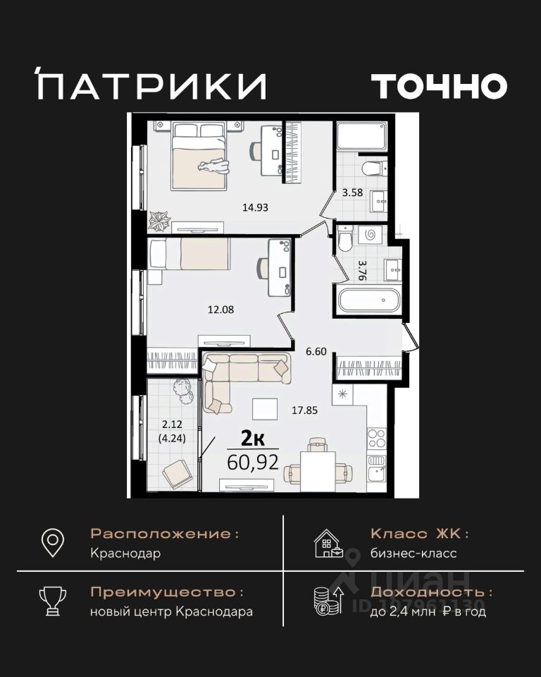 продам 2-к квартира17 155 072 ₽