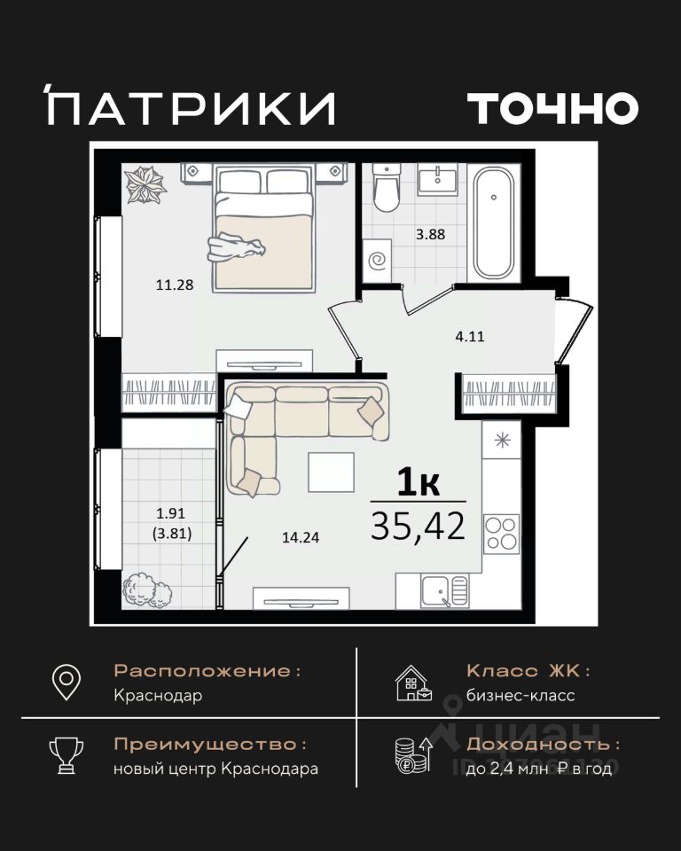 продам 1-к квартира11 444 202 ₽
