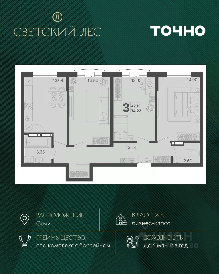 продам 3-к, Сочи30 805 450 ₽