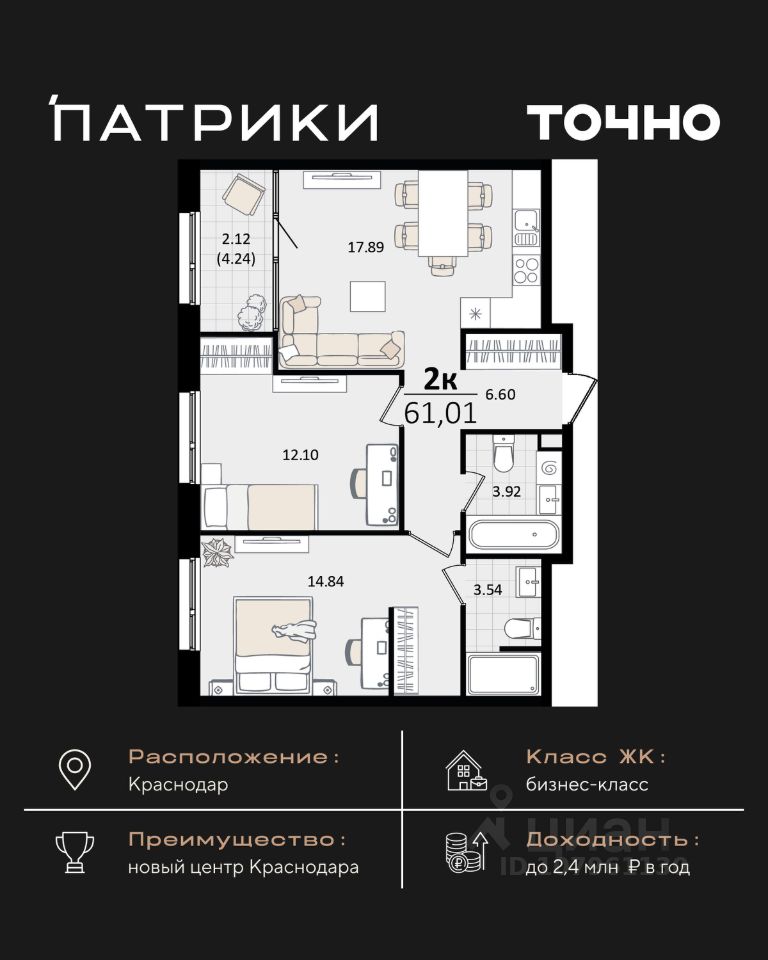 продам 2-к квартира18 736 171 ₽
