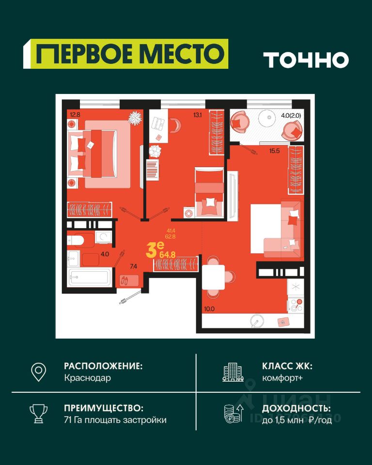 Общая площадь64,8 м2