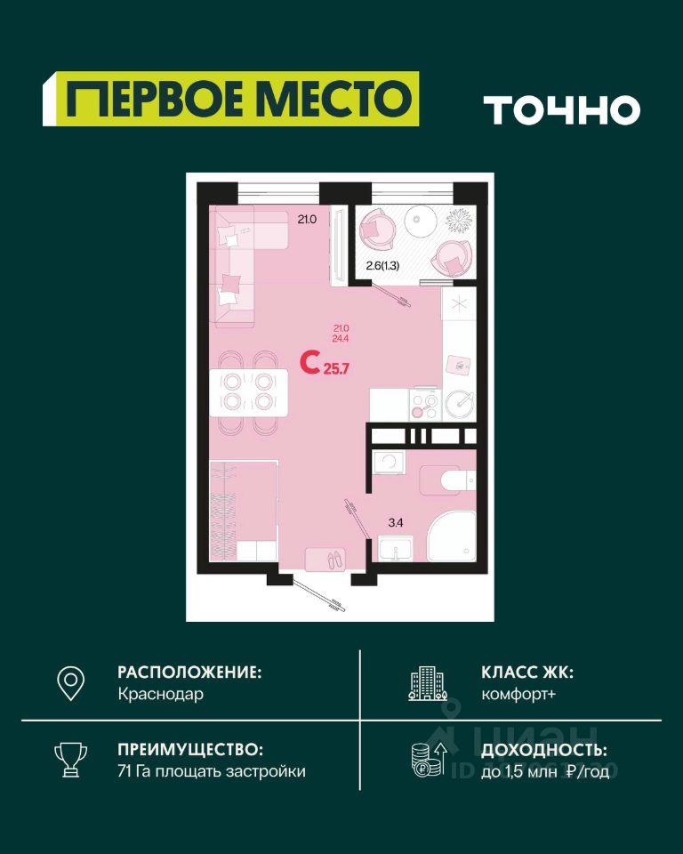 Общая площадь25,7 м2