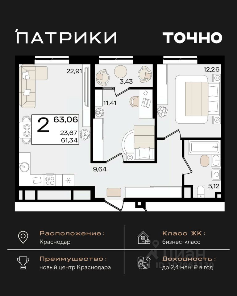 продам 2-к, Сормовская, 1/1 лит.14 034 000 ₽