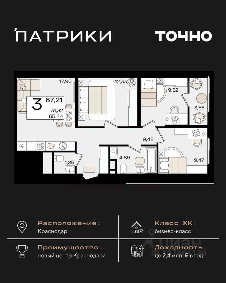 продам 3-к квартира14 249 000 ₽
