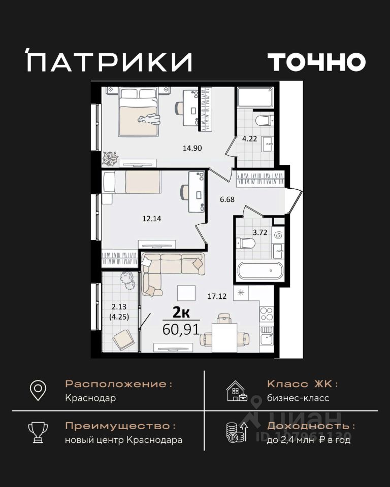 продам 2-к квартира17 243 621 ₽