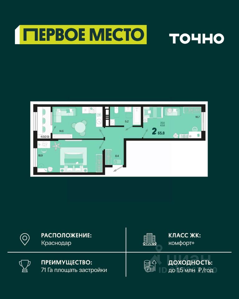 Общая площадь65,8 м2