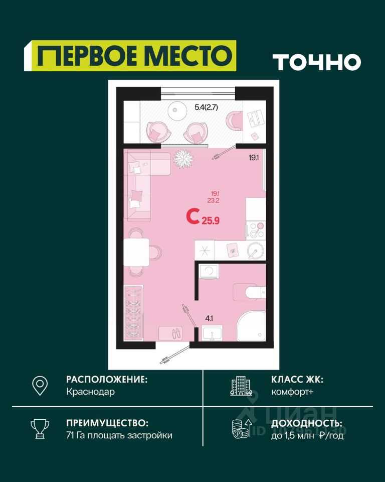 Общая площадь25,9 м2