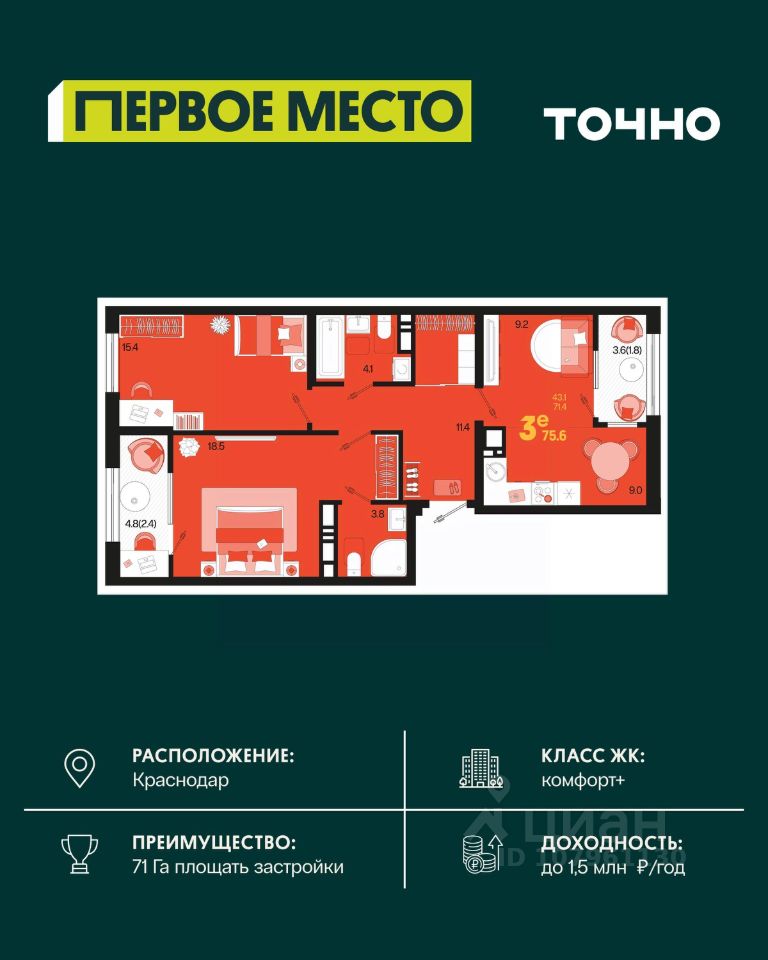 Общая площадь75,6 м2
