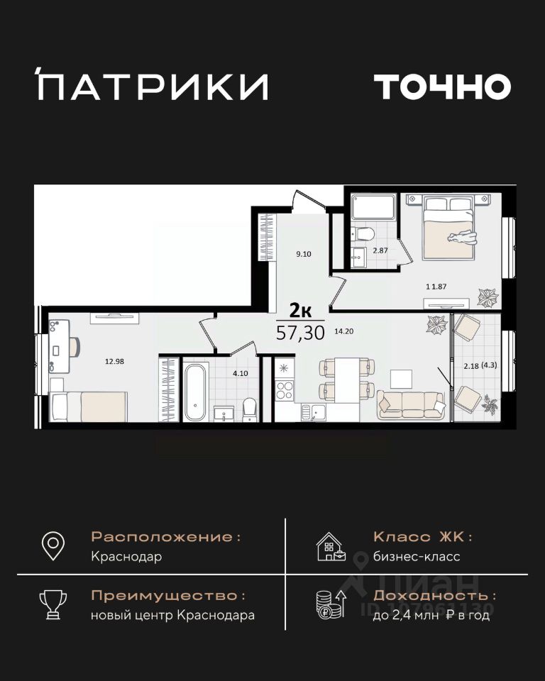 продам 2-к квартира17 539 530 ₽