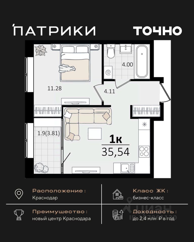 продам 1-к квартира11 838 374 ₽