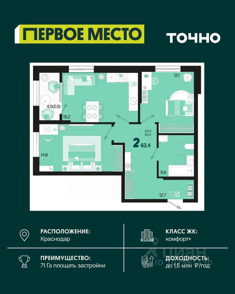 Жилой район ''Первое место''- один из самых масштабных проектов в России. На территории 71 га 18 кварталов, 31 дом переменной этажности от 8 до 18 этажей, собственный парк 9 га, храмовый комплекс, пешеходный бульвар ''Круг семьи'', детские и спортивные площадки, мангальные зоны и различные локации для отдыха. В шаговой доступности действующие муниципальные образовательные учреждения: школа на 1 100 мест и детский сад на 250 мест. Помимо этого, в жилом районе ''Первое место'' построятся школа на 1700 мест с крытым 25-метровым бассейном и 5 детских садов на 1 490 мест. На первых этажах многоуровневых парковок ''паркхабов'' разместится более 61 тыс м2 коммерческих помещений. Жителям будут доступны собственный фитнес-центр, кафе, рестораны и магазины. В каждом подъезде предусмотрены дизайнерские холлы в стиле лобби отелей, консьерж-сервис, лапомойки, отдельные колясочные и велосипедные. Также в домах будут просторные кладовые помещения и комнаты для хранения почты с почтоматами для получения посылок из маркетплейсов.