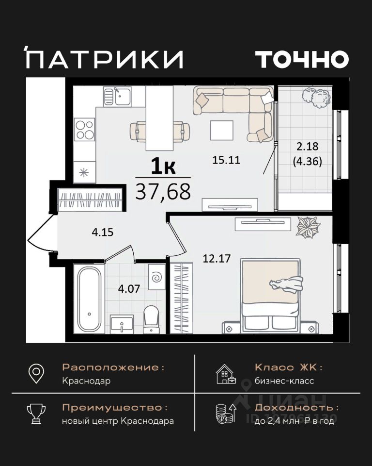 продам 1-к квартира11 450 952 ₽