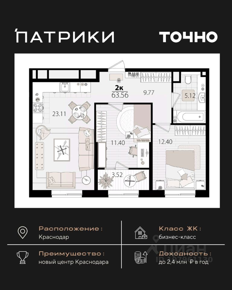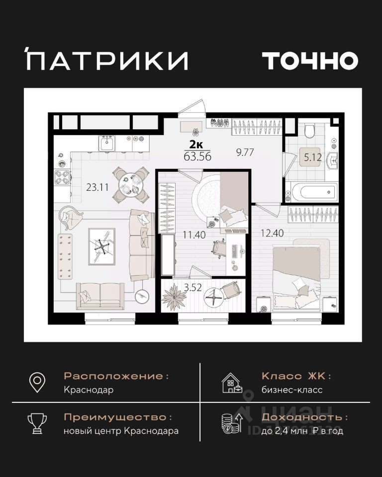 продам 2-к, Сормовская, 1/1 лит.16 304 000 ₽