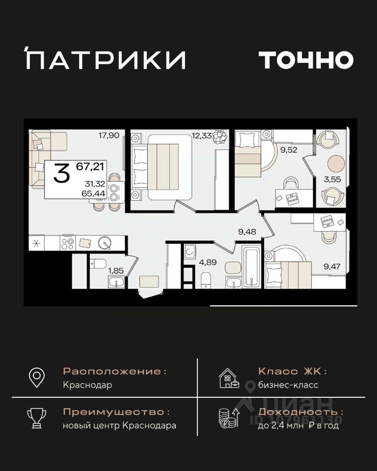 продам 3-к квартира14 719 000 ₽