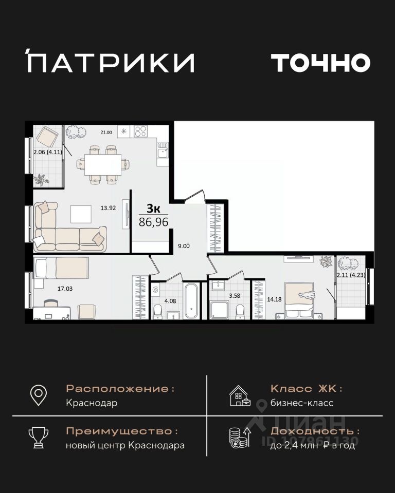 продам 3-к квартира25 496 672 ₽