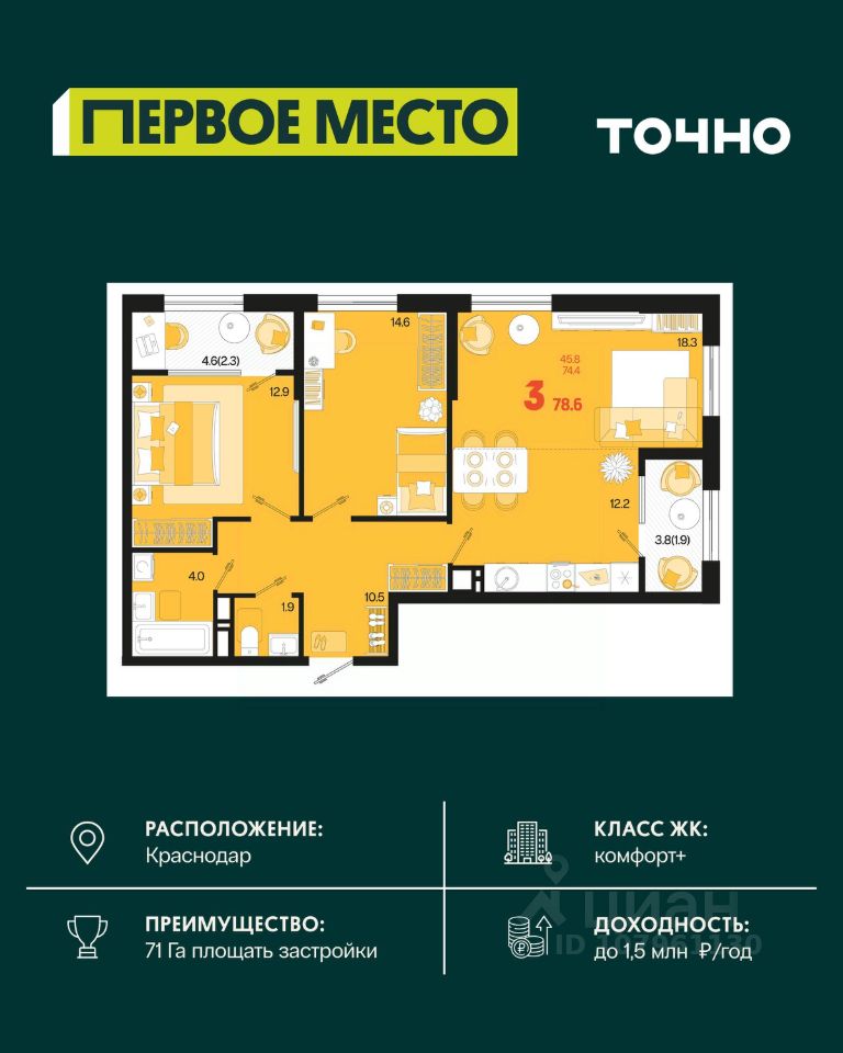 Общая площадь78,6 м2