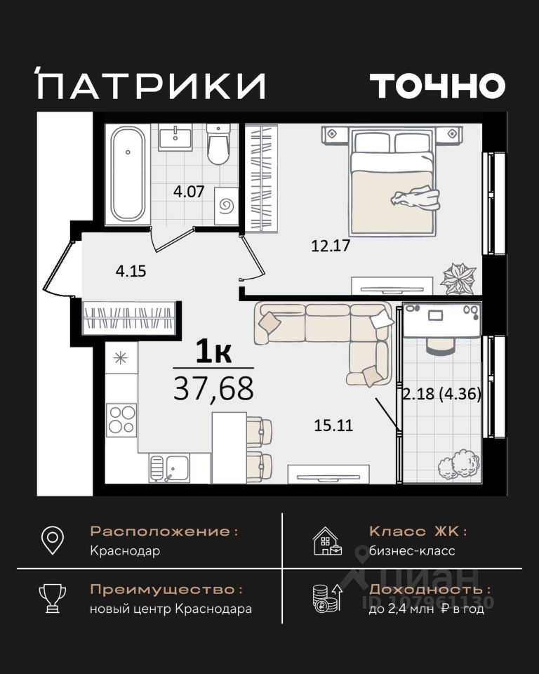 продам 1-к квартира12 174 408 ₽