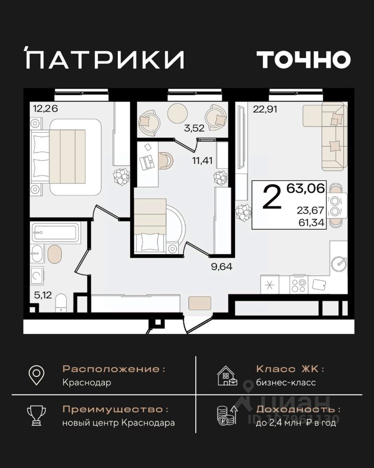 продам 2-к, Сормовская, 1/3 лит.14 980 000 ₽